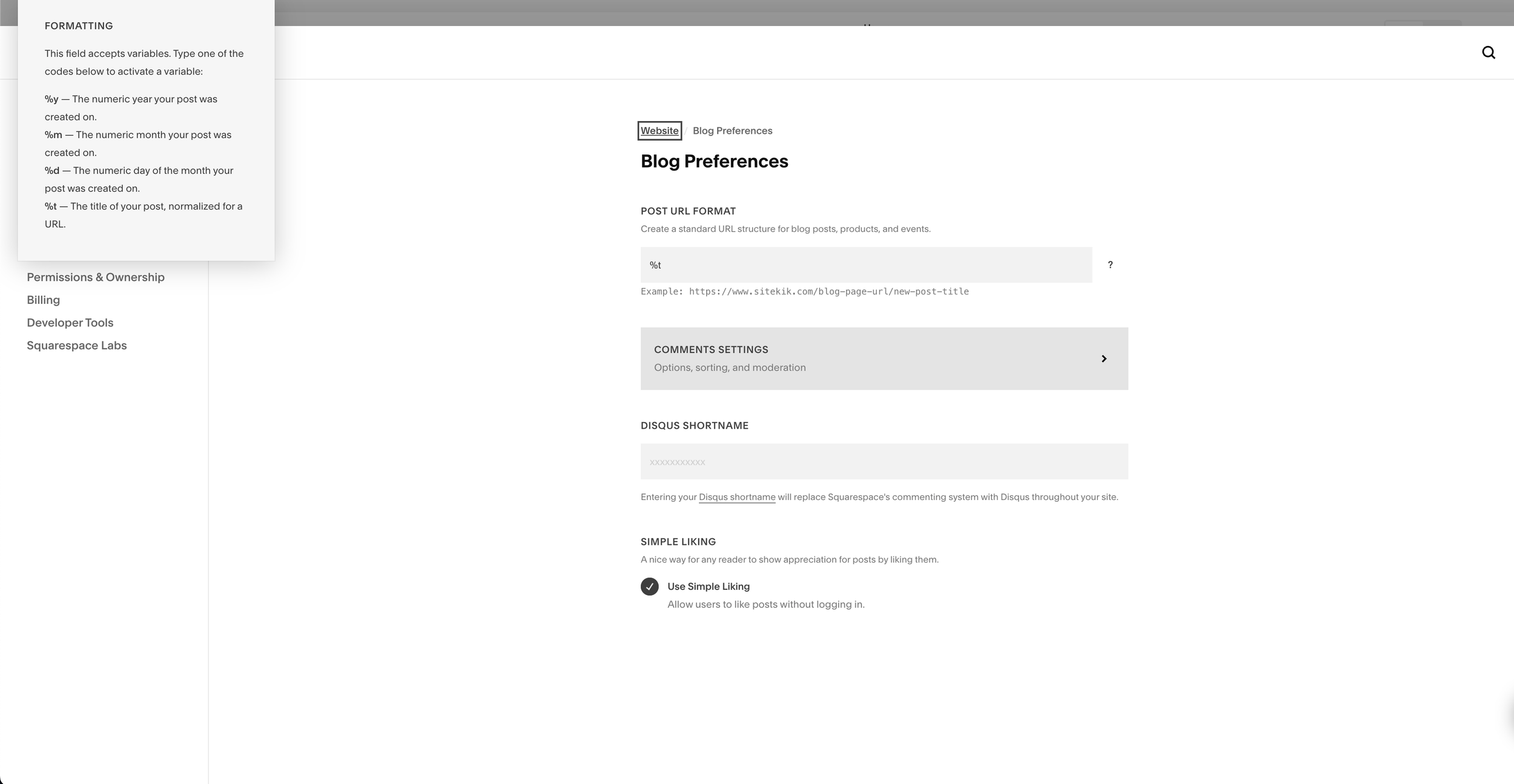 Squarespace also gives you control over how blog post slugs are structured. You can: