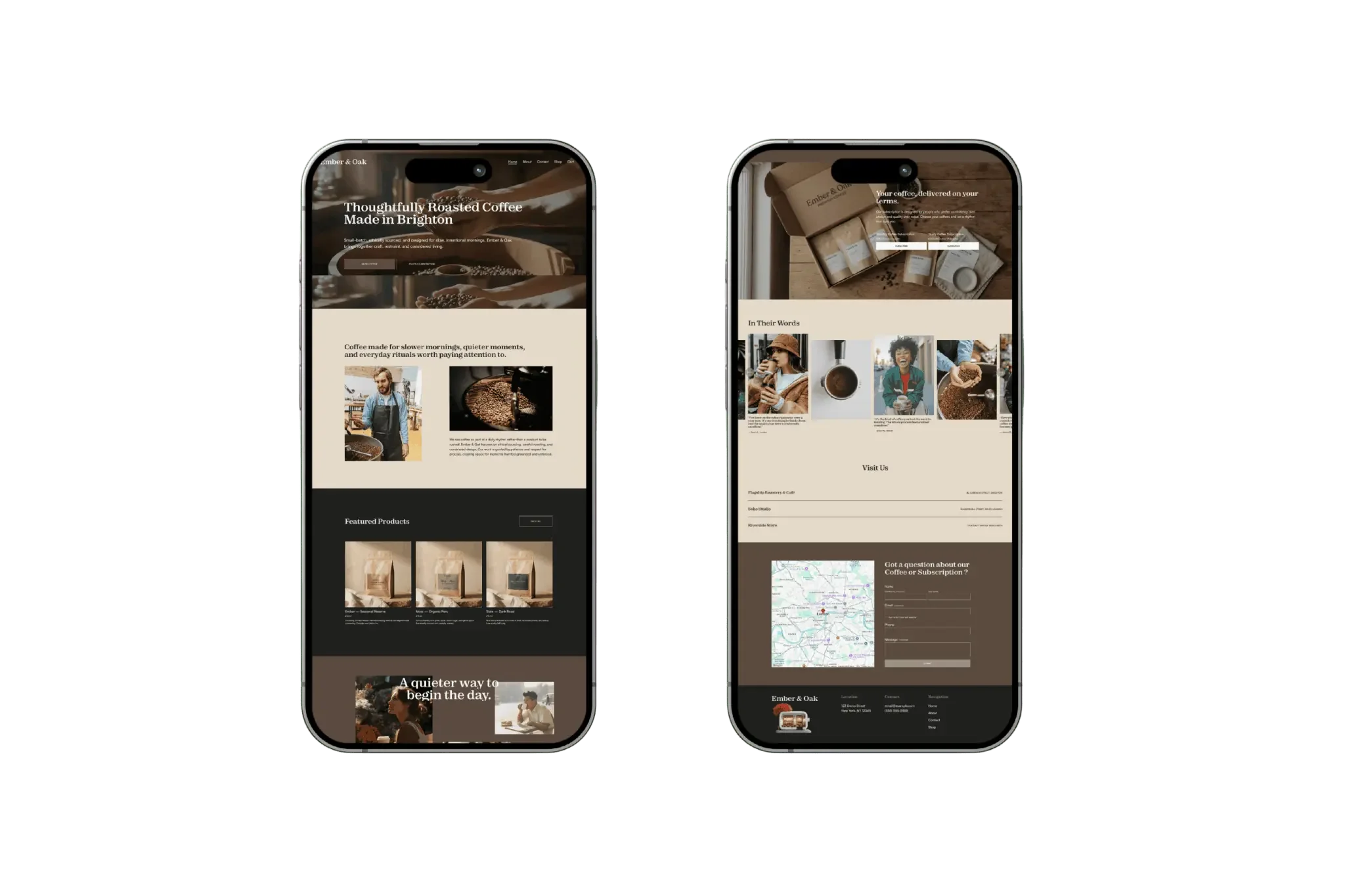 Ember & Oak Coffee’s website was built to clearly present the café’s menu, atmosphere, and location while maintaining a warm, welcoming tone. Designed on Squarespace, the site focuses on clarity, structure, and ease of navigation for both new visitors and returning customers.