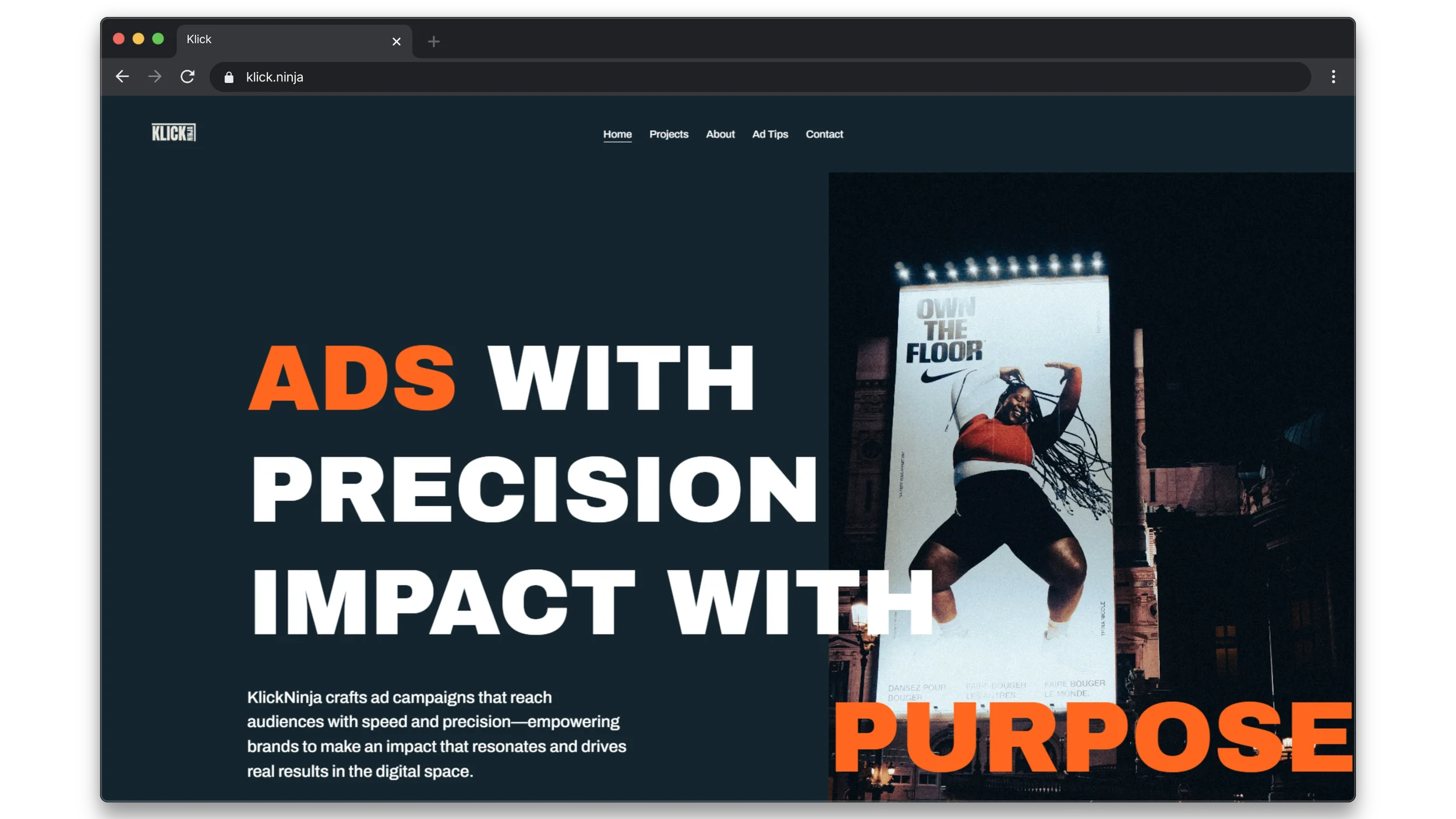 The homepage opens with a strong tagline — “Ads with Precision, Impact with Purpose” — paired with a powerful hero image that sets the tone. Just below, a showcase of brands like Nike, Mailchimp, and Outdoor Voices instantly builds trust and highlights KlickNinja’s experience across industries.